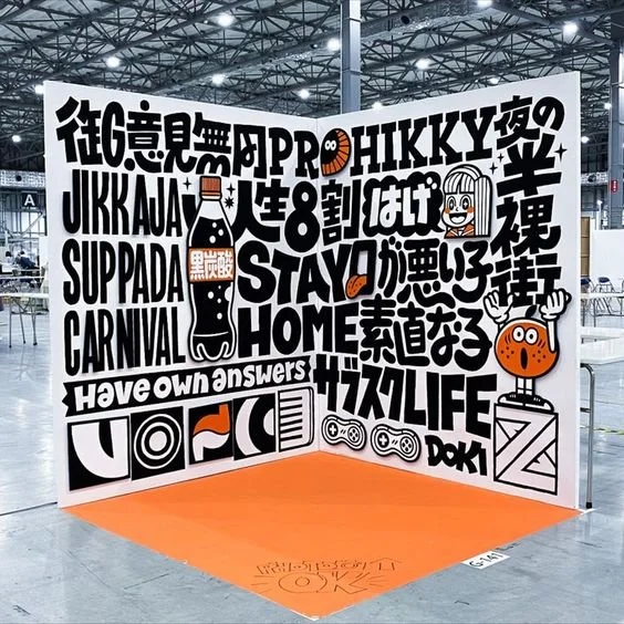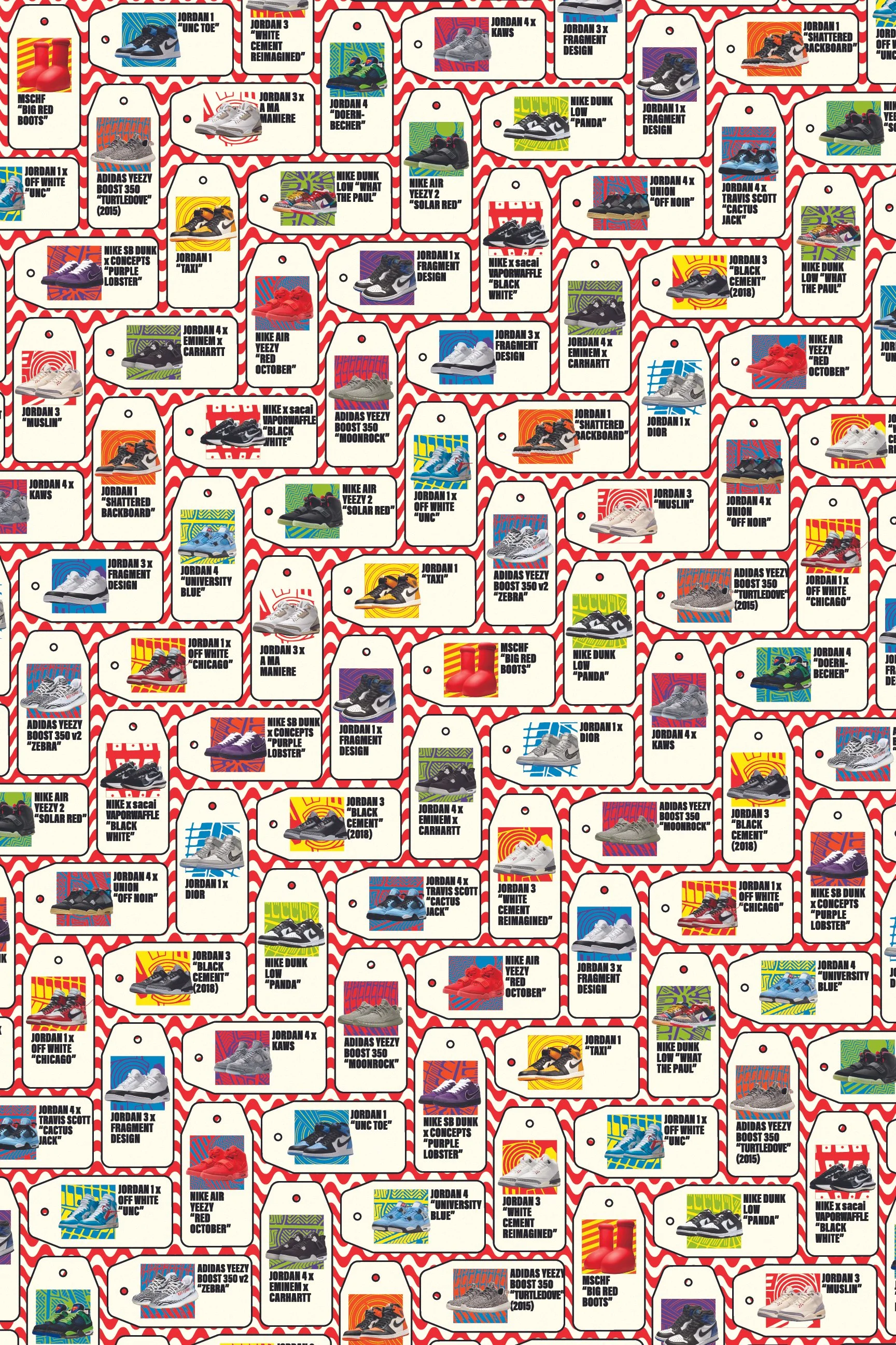 For one of the walls, I wanted to lean into the motif of the sneaker tags and display them in an appealing way. For the other wall, I wanted it to be branded and have distance appeal, enticing viewers to come and interact with the exhibit.